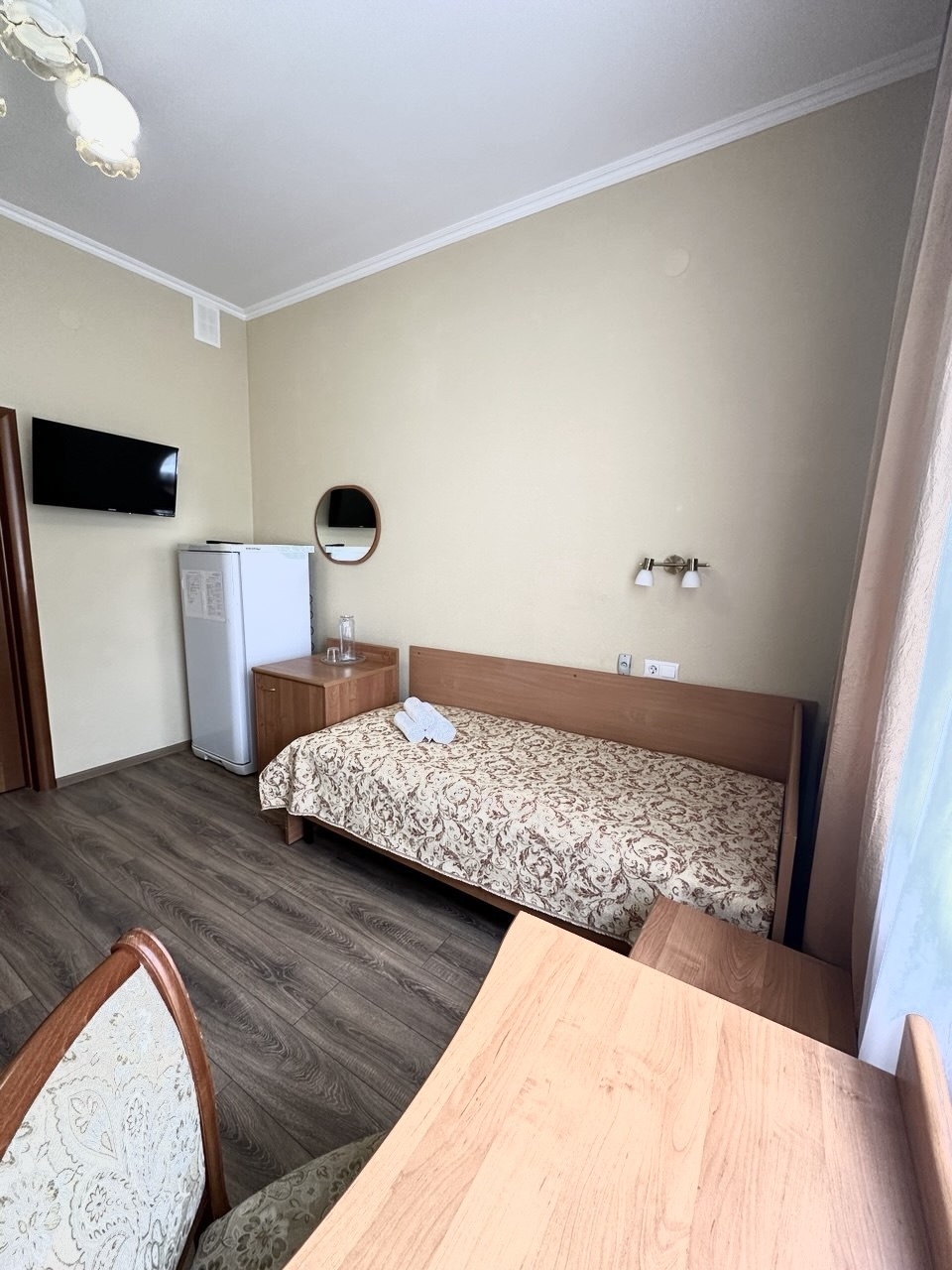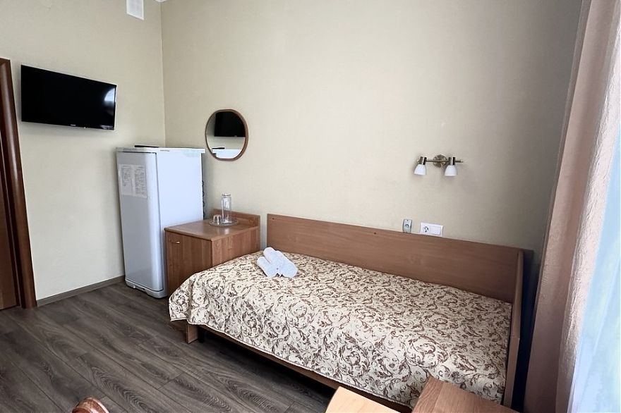 Одноместный номер - номер оборудован всем необходимым для комфортного проживания: удобная мебель, техника( холодильник, кабельное ТВ). Одноместный номер идеально подходит тем, кто ценит личное пространство и предпочитает отдыхать в атмосфере покоя и уюта.